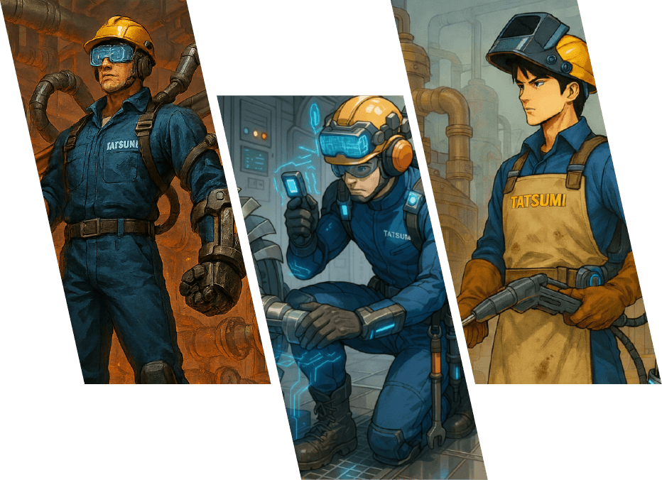 巽工業では、未経験からスタートして活躍している先輩社員がたくさんいます。最初は工具の名前もわからなかった人が、今ではチームを引っぱる存在に。現場の空気や仕事のやりがい、資格取得のエピソードなど、リアルな声を通して「この仕事の魅力」を感じてください。